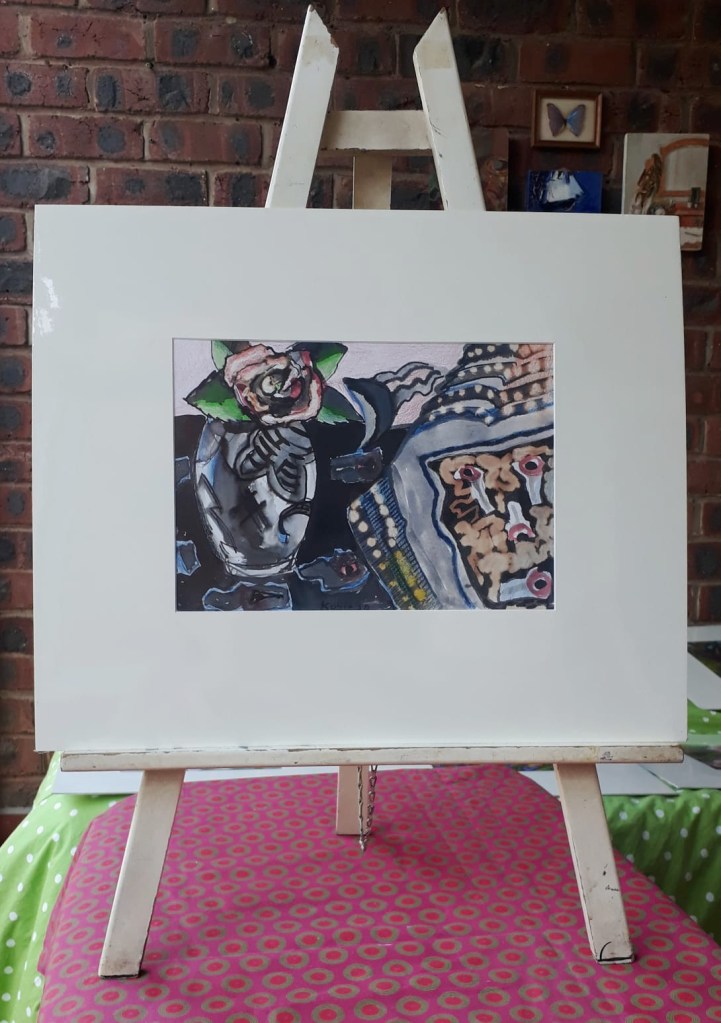 For many years Kobie found inspiration from her close friend, Sue Physick, who encouraged her to play more, and to enjoy the process, as their friend Jutta Faulds also taught. When Sue died in January 2021, Kobie found inspiration to start making new artworks, playing with colour. In the past many of her drawings were done with a brush and black ink. These images often leaned towards the surreal and were derived from found objects, juxtaposed in sculptural ways. She now started discovering new ways of using colour. At the same time her love for nature and flowers, which had its roots in her Cape childhood, found expression.
